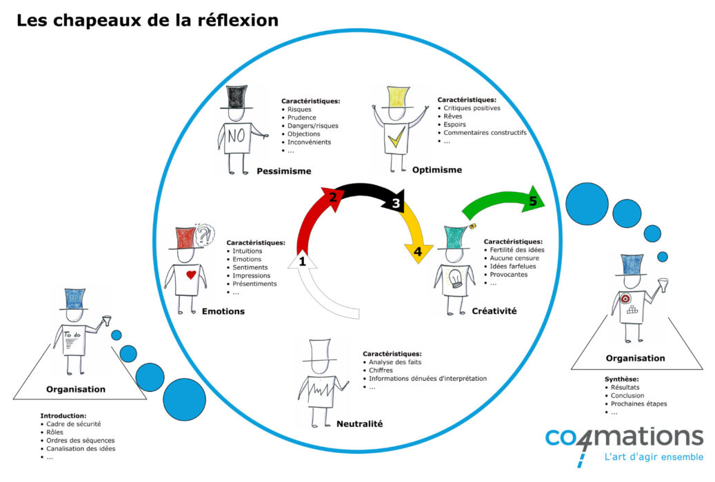 Bienvenue dans l’univers des “Chapeaux de la Réflexion”, une méthode élaborée par Edward De Bono pour orchestrer des discussions structurées et éclairées. Cette approche novatrice permet à un groupe de réfléchir de manière coordonnée, séquentielle et harmonieuse.